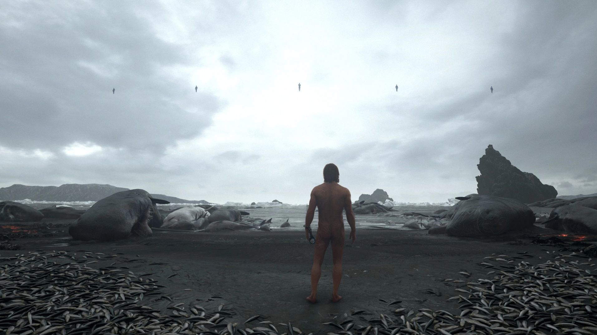 Death Stranding is his new game and all that was really revealed during his short appearance on Sony’s stage was digital versions of the game’s star, Norman Reedus’s butt cheeks as his character wakes naked up on an oil-soaked beach surrounded dead sea life.