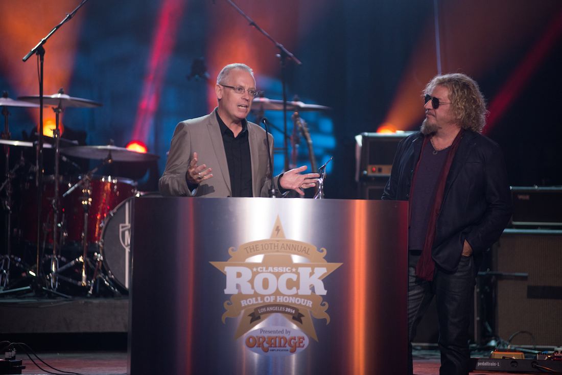 The Classic Rock Roll of Honour awards show took place in Los Angeles on Tuesday. Hosted by Sammy Hagar, the evening saw awards presented to the likes of Joe Perry, Dave Mustaine and Ozzy Osbourne, while guest presenters included Henry Rollins, Billy Gibbons and Scott Ian. There were live performances from Scott Weiland and the Wildabouts, California Breed, and a rapturously received set from Rival Sons. The evening was finished with a performance by ad-hoc supergroup Kings Of Chaos, featuring Gilbons, Perry, Hagar, Glenn Hughes, Joe Elliott, Brian May and more.