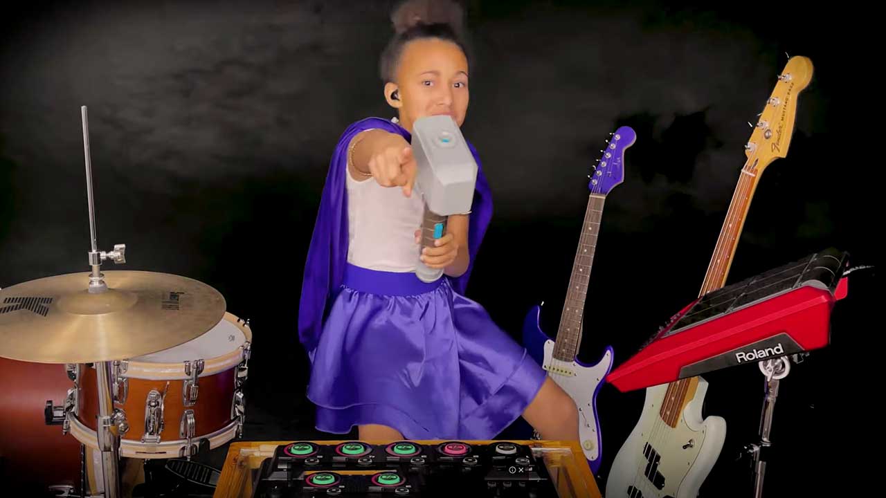 Bushell's latest target is Jimmy Page, whose birthday was on January 9. To mark the occasion Bushell filmed herself performing Led Zeppelin's classic Immigrant Song. She starts by looping the drum part, before adding the bass and guitar, then finally triggering a sample of Robert Plant's iconic 'Ah-ah-ahhhhhhhhh-ahh' scream using what appears to be an actual Thor's Hammer.