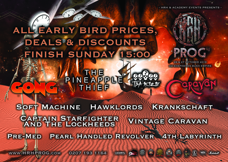 And the first names confirmed for the festival are The Pineapple Thief, Gong, Caravan, Soft Machine, Hawklords, Krankschaft, Captain Starfighter And The Lockheeds, Vintage Caravan, Pre-Med, Pearl Handled Revolver and 4th Labyrinth.