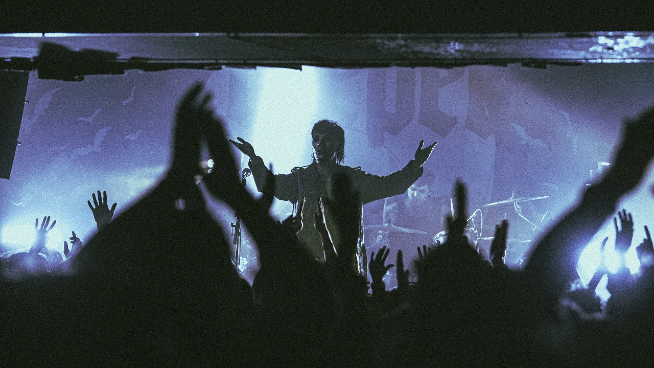 It's clear this is a crowd in the mood to party, and as soon as Creeper stride out on stage - bathed in blood-red light, clad in matching biker jackets, slick hair and facepaint and slamming into fangtastic, Lost Boys-core banger Cry To Heaven - it's clear they're in the mood, too. Following the success of last year's magnificent Sanguivore album and the successful Academy-sized tour that followed, tonight marks the latest stop-off in a bolt-on run around some more intimate haunts, though with around 800 lost souls squeezing into Chalk this evening, it's hardly a grotty, toilet venue punk gig.
