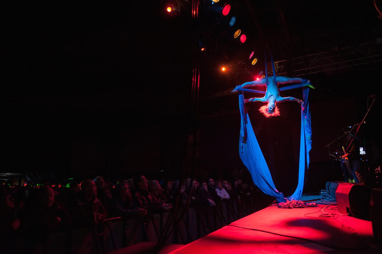 It’s not all headbanging stuff though, with some atmospheric background music playing while the band’s dancer takes to the air for a display on aerial silks, relying on a different set of skills to those of the infamous Stacia. The change of pace also helps create a contrast between the heavier songs, with an outstanding Born To Go played next. Dead Fred’s violin and Richard Chadwick’s drumming work are particularly noteworthy during this song. The theremin playing of keyboardist Tim Blake comes to the fore as well, adding spacey touches to the music.