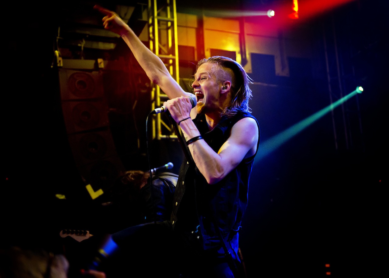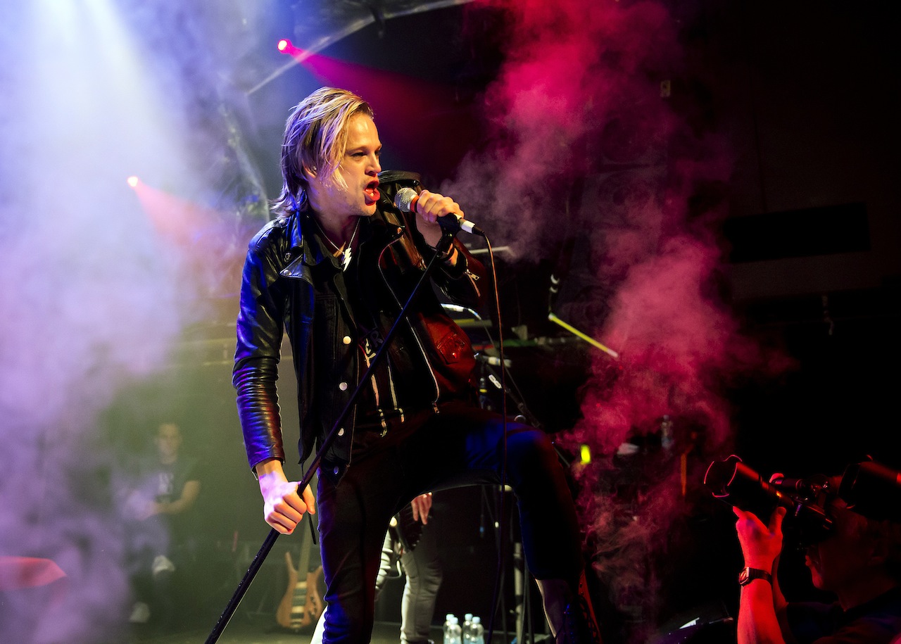 Since reinventing himself as a rock star (though he sang songs by Iron Maiden, Europe and Skid Row on television), the charismatic, livewire Grönwall displays boundless potential, shadow boxing, pogoing and throwing every fibre of his being into the show. There’s a gritty side to his character that brings to mind Sebastian Bach, especially when he spits up in the air only for the phlegm to drop back onto his forehead, causing him to grin and consume it.